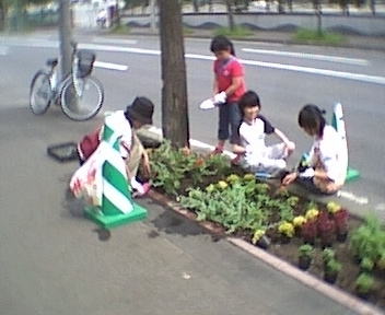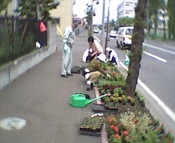 6月5日にサッポロビ−ル園前の北8条通花壇で、第二回亜麻の苗を植える会を開催しました。